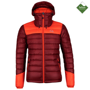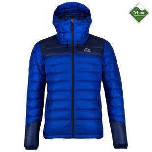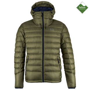 Made with nylon ripstop outer fabric, a DWR (Durable Water Repellent) & down proofing finish the jacket can handle light rain showers without moisture impairing the insulating properties of the down.